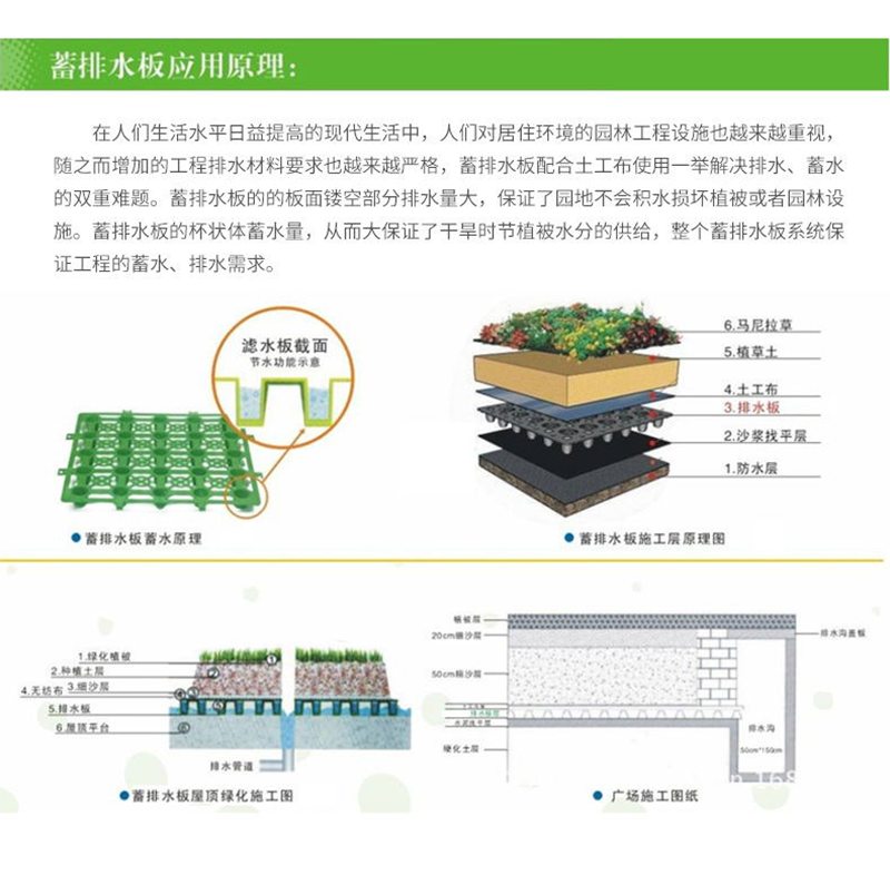 用于屋頂綠化、地下車頂板綠化、城市廣場(chǎng)、高爾夫球場(chǎng)、運(yùn)動(dòng)場(chǎng)、污水處理廠、公共建筑綠化,園區(qū)內(nèi)道路綠化工程。